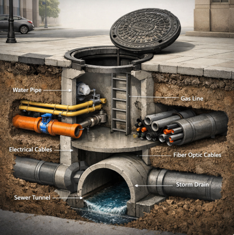 Apabila bandar berkembang dengan pesat, keperluan untuk rangkaian utiliti bawah tanah meningkat secara eksponen. Sistem pembetungan dan saliran yang kompleks memerlukan akses berkala untuk pemeriksaan struktur, pembersihan dan kerja pembaikan. Tanpa perlindungan yang sesuai, bukaan ini boleh menjadi titik kelemahan struktur jalan raya serta ancaman keselamatan kepada pengguna.